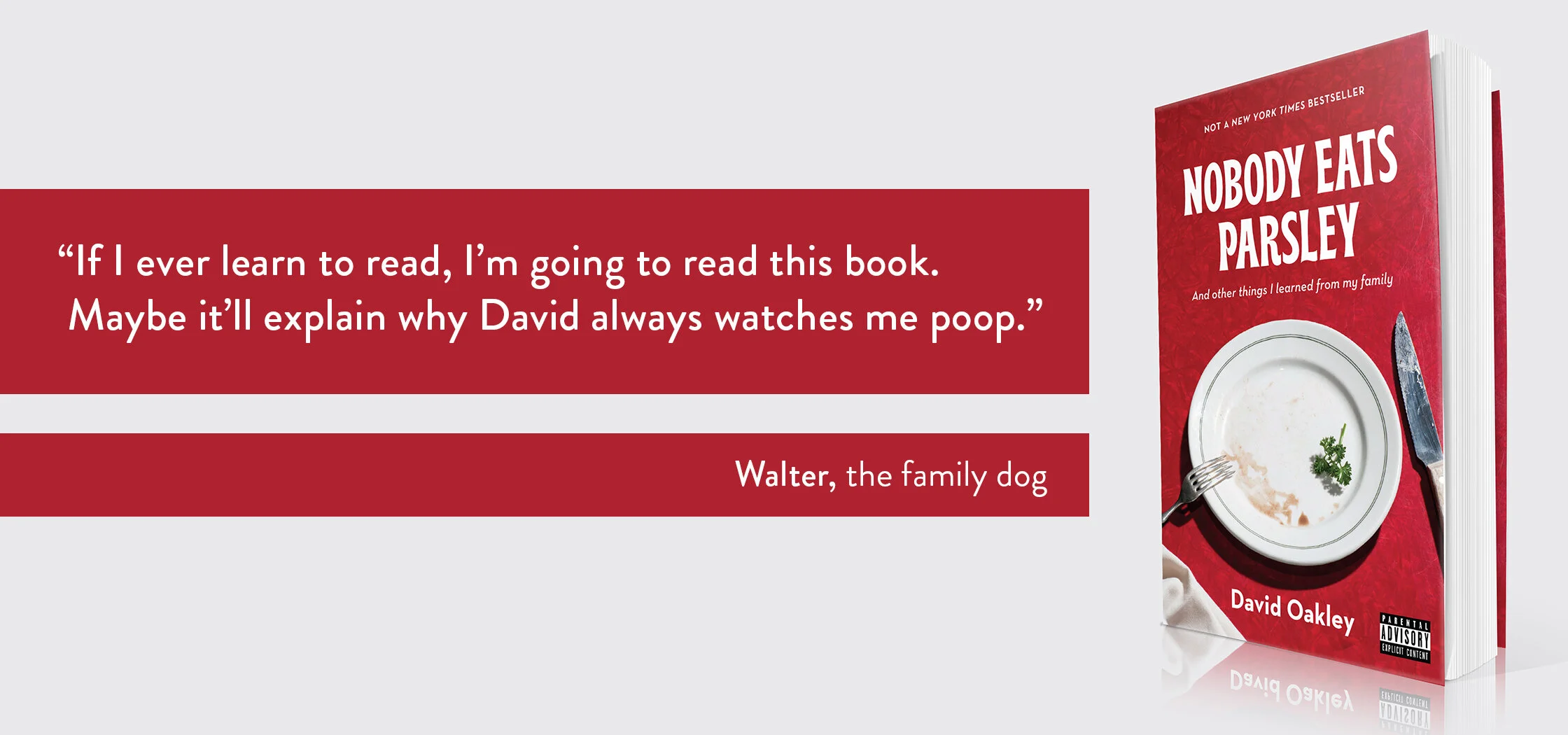 If you like ‘the other’ David (as in Sedaris) then you’re going to LOVE the comic, nuanced writing of David Oakley. Nobody Eats Parsley is non-put-downable, non-stop fun from cover to cover.